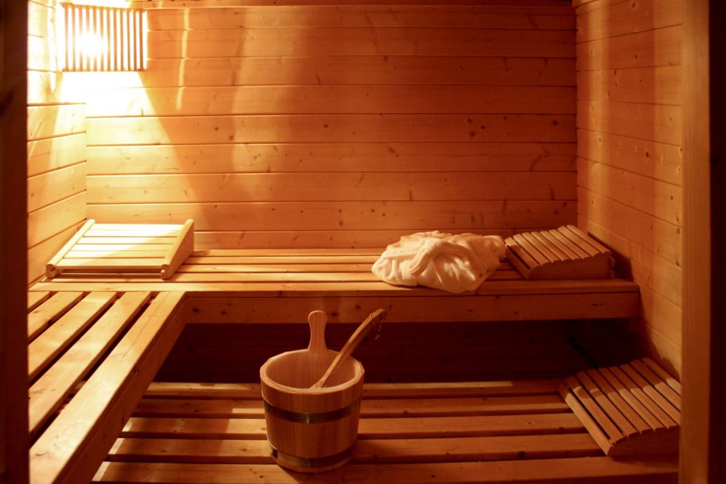 Wasser, Tee, Softdrinks, Obst, Handtücher, Saunatücher, Bademäntel und Duschsandalen.